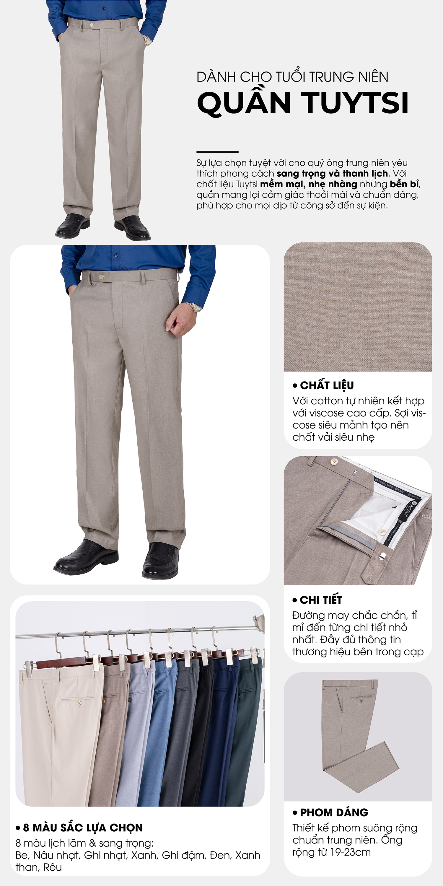 Quần Âu 0 Li Nam Trung Niên ANCHI Chất Liệu Tuytsi Siêu Nhẹ Phom Suông Ống Rộng