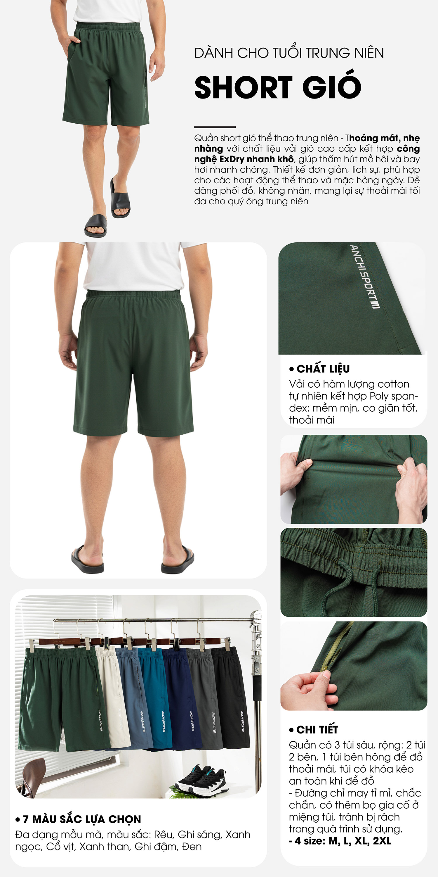Quần Soọc Gió Nam Trung Niên Co Giãn Mềm Nhẹ